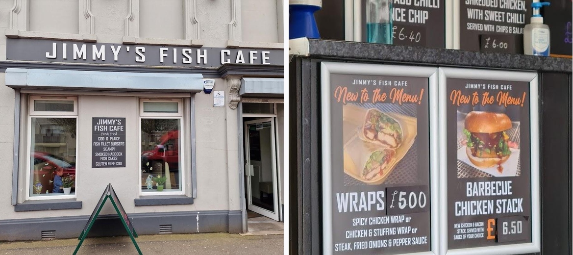 Got a fish out of Jimmy's tonite 8/5/25 and it was so good the batter was so light and not to crispy it was lovely, got chips to but they where ok but the fish was amazing. And the 2 girls on the counter was nice and polite even if I did get mistaken for someone else lol 🤣
